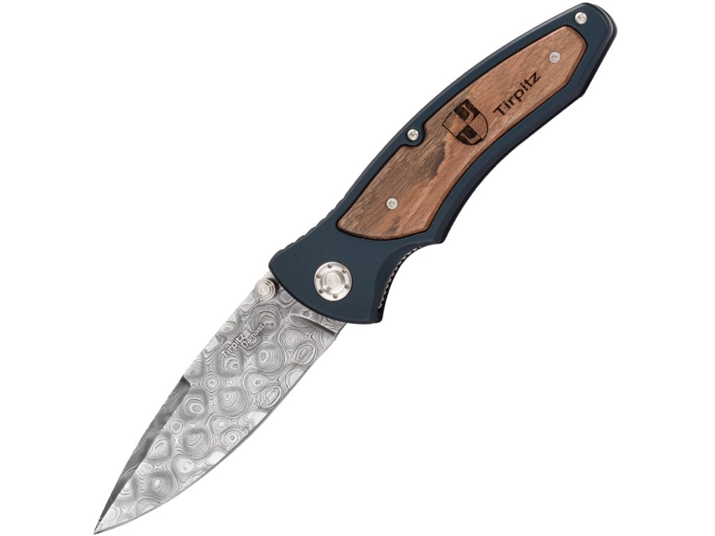 Rukoväť vyrobená z vysokopevnostného hliníka AlMgSi1 (so silicium, čo mu dáva oveľa vyššiu kvalitu ako v prípade štandardu AlMg3), je eloxovaná tvrdou vrstvou a poskytuje pevné a bezpečné uchopenie. Nôž disponuje prestaviteľnou sponou na opasok a tak umožňuje komfortné nosenie pre každého. Vložka rukoväte je vyrobená z lokálneho orechového dreva, ktoré je známe svojou kvalitou a osvedčilo sa aj pri používaní na dlhé strelné zbrane. Celok vkusne dopĺňa pôvodný erb Tirpitz. Tento nôž kombinuje históriu, tradíciu a moderné technológie viac ako jedinečným spôsobom. Dodáva sa v prezentačnom boxe s certifikátom pravosti a sériovým číslom.