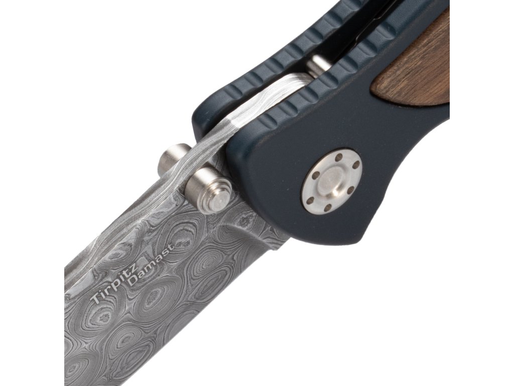 Rukoväť vyrobená z vysokopevnostného hliníka AlMgSi1 (so silicium, čo mu dáva oveľa vyššiu kvalitu ako v prípade štandardu AlMg3), je eloxovaná tvrdou vrstvou a poskytuje pevné a bezpečné uchopenie. Nôž disponuje prestaviteľnou sponou na opasok a tak umožňuje komfortné nosenie pre každého. Vložka rukoväte je vyrobená z lokálneho orechového dreva, ktoré je známe svojou kvalitou a osvedčilo sa aj pri používaní na dlhé strelné zbrane. Celok vkusne dopĺňa pôvodný erb Tirpitz. Tento nôž kombinuje históriu, tradíciu a moderné technológie viac ako jedinečným spôsobom. Dodáva sa v prezentačnom boxe s certifikátom pravosti a sériovým číslom.
