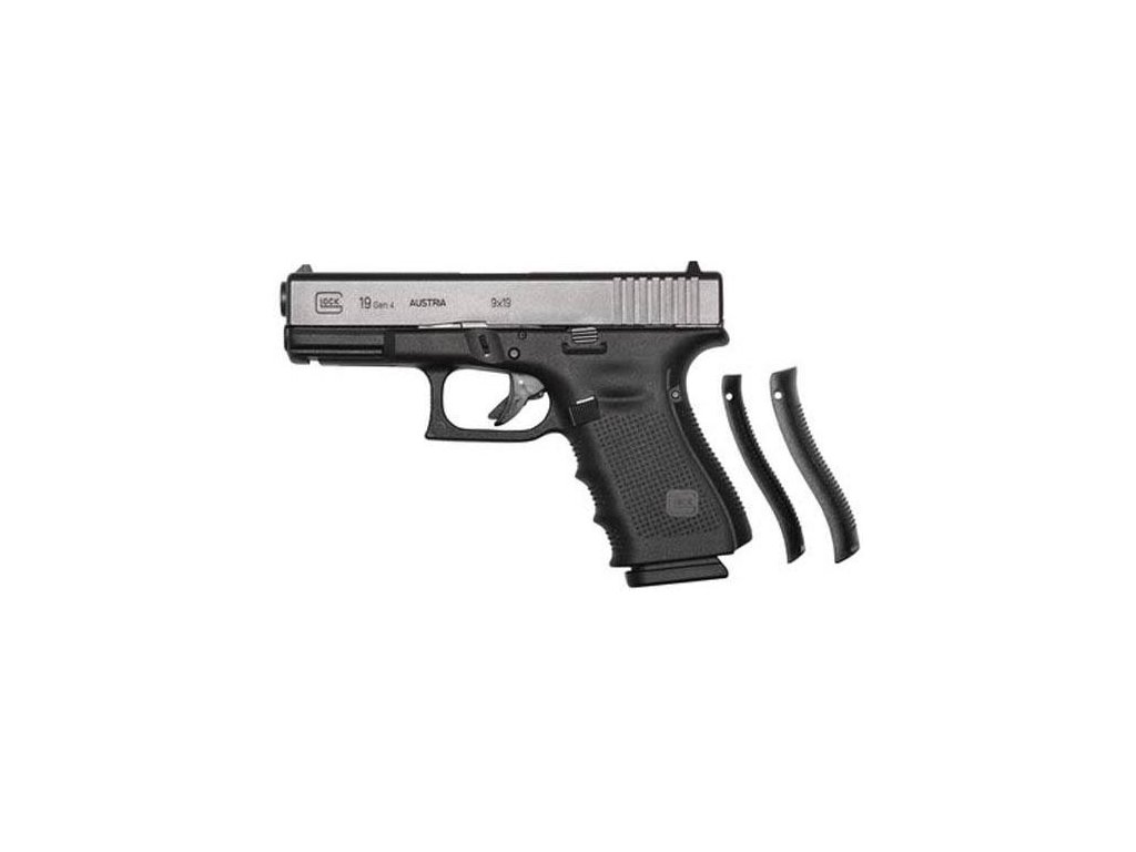 Glock 4 generácie ponúka dva násuvné zadné chrbáty na pažbičke pištole čo umožňuje strelcovi upraviť si úchop podľa svojej ruky. Základná veľkosť S je pevne na ráme a je o 2 mm menšia oproti plnej veľkosti modelu G19, teda veľkosti M. Veľkosť L je o 4 mm väčšia oproti základnej veľkosti. Sklon rukoväte je pritom zachovaný.