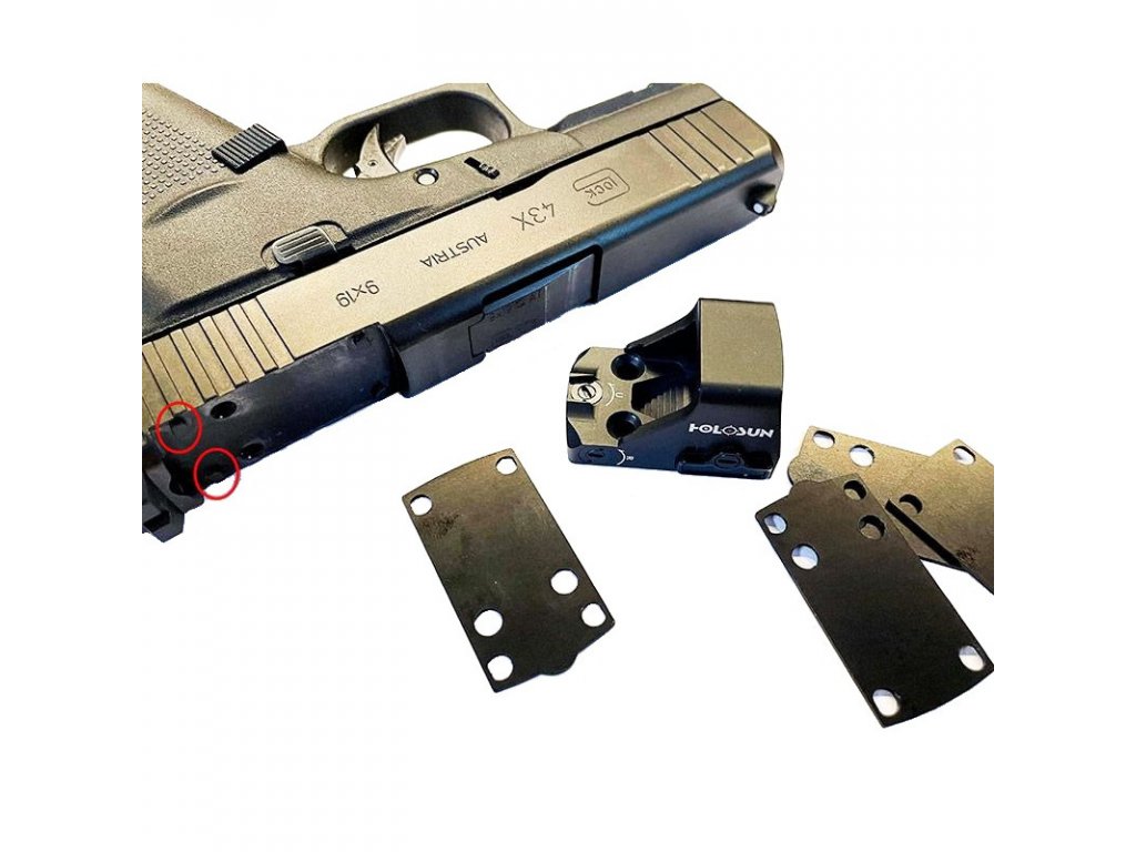 Montážna platnička pre kolimátor Holosun RMSc určená pre subkompaktné pištole Glock 43/48 s predprípravou na kolimátor (MOS) v kombinácií s kolimátorom Holosun HS407K / HS507K.